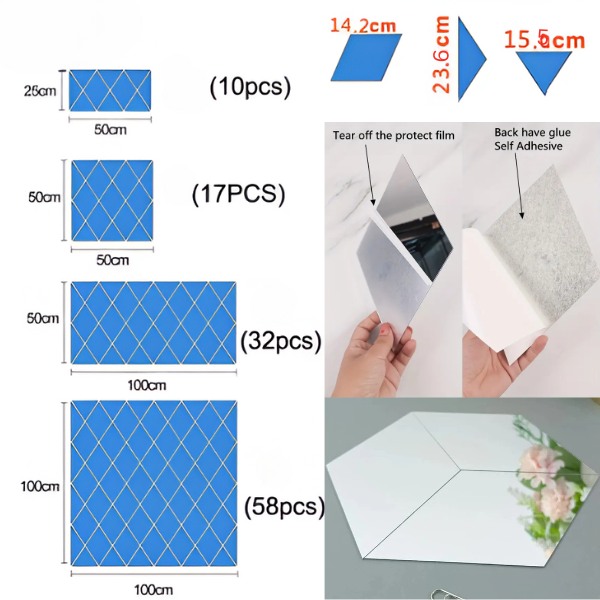 32 x WALLGEM spoguļu uzlīmes, lai izkārtotu pēc saviem ieskatiem.