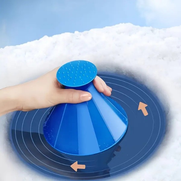 Konusa forma ļauj nokasīt no jebkura leņķa, aptverot lielāku virsmas laukumu īsākā laikā. Notīriet ledu no vējstikliem, spoguļiem un logiem ar vienmērīgām, apļveida kustībām.