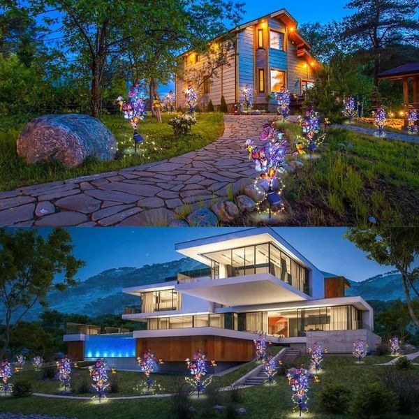 Ideāli piemērotas dārziem, zālieniem, celiņiem, pagalmiem un daudz kam citam, šīs tauriņu gaismas sniedz brīnišķīgu gaismu un rada romantisku un svētku noskaņu visur, kur tās novietotas. Izmantojiet tās, lai izgaismotu celiņus, izdekorētu āra svinības vai izceltu dārza ainavas skaistumu.