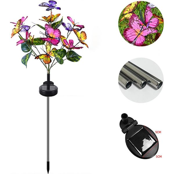 Izgaismojiet savu dārzu ar šiem neparastajiem saules tauriņu lukturiem, kas jebkurai āra videi piešķirs kaprīzes un šarmu. Pārsteidziet savus viesus ar to unikālo dizainu, vienlaikus radot maģisku gaisotni savā dārzā. Katrs tauriņš ir smalki veidots, lai tas būtu reālistisks.