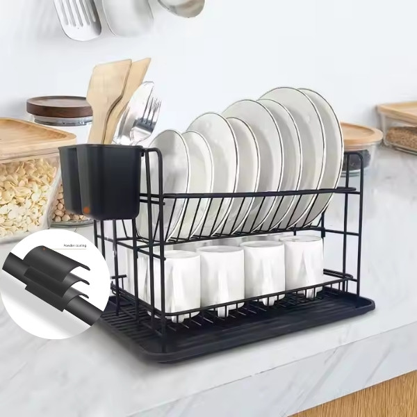 Atvadieties no nekārtības! Šis trauku žāvētājs nodrošina kārtību jūsu virtuvē, ļaujot traukiem, bļodām un piederumiem efektīvi nožūt, vienlaikus saglabājot kārtīgu kārtību.