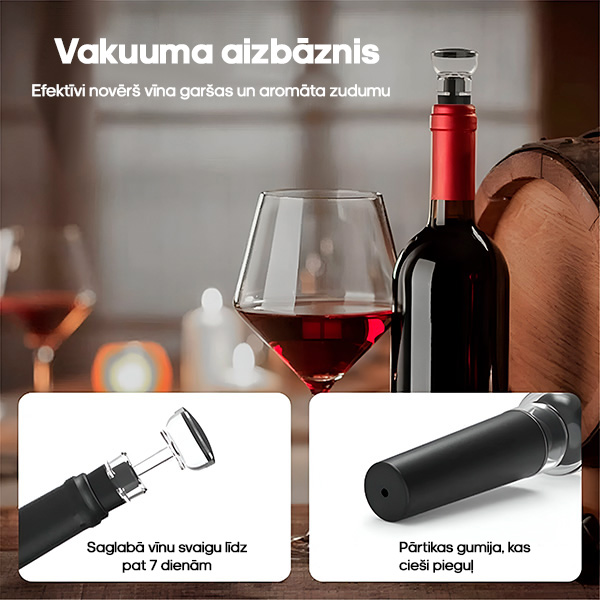 🔒 Vakuuma aizbāznis saglabā atvērto vīnu svaigu vairākas dienas