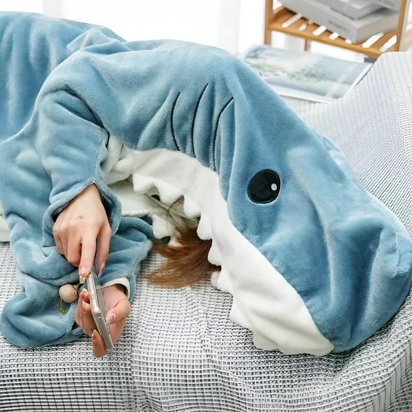 🦈 Iegremdējieties komfortā ar haizivs segu – daļēji sega, daļēji guļammaiss, daļēji haizivs!