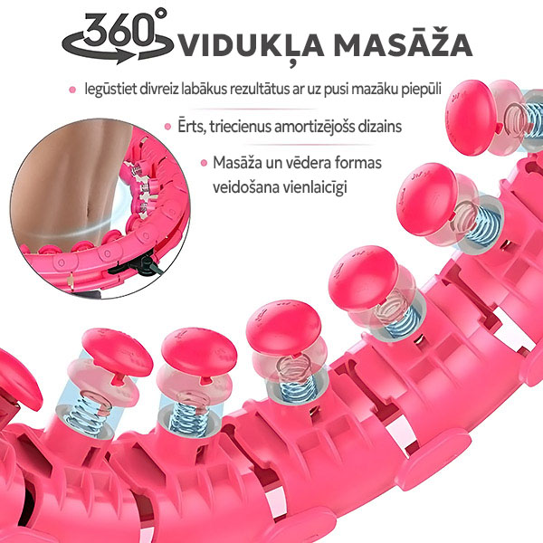 Pateicoties magnētiskajiem savienojuma segmentiem un 360° masāžas galviņām, riņķis droši turas savā vietā, padarot to par ideālu fitnesa rīku pat iesācējiem.