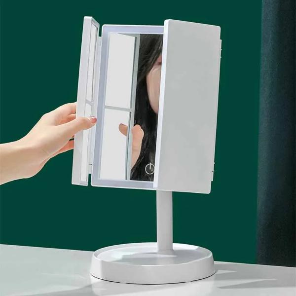 📐 Izmēri: aizvērts 24 x 18 x 6 cm – atvērts 33,5 x 38,8 x 22 cm – 3 spilgtuma līmeņi – 3 gaismas krāsu režīmi – 2x un 3x palielinājums
