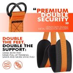Aprīkots ar stipru tērauda sprādzi un ar audumu pārklātām lateksa caurulēm, kas nodrošina lielāku drošību un ilgmūžību treniņu laikā.