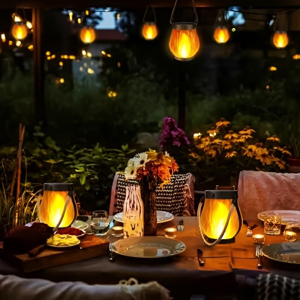 FLAMLUX saules laternas atdarina īstas uguns hipnotizējošo mirdzumu ar mirgojošām LED gaismām, radot maģisku atmosfēru jūsu dārzā, terasē vai jebkurā āra vidē.