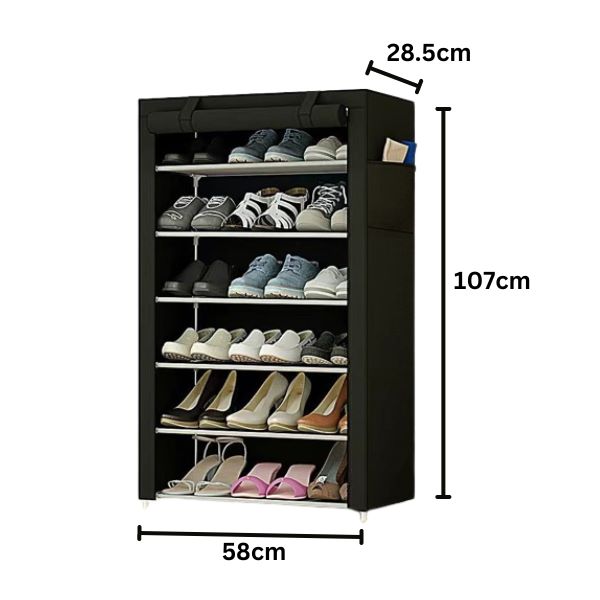 Tā izmēri ir 58 x 28.5 x 107 cm, un tas ir veidots tā, lai taupītu vietu. Novietojiet to jebkurā vietā savā mājoklī, sākot no skapja un beidzot ar ieejas durvīm. Saglabājiet savus apavus sakārtotus, nezaudējot vērtīgu vietu.