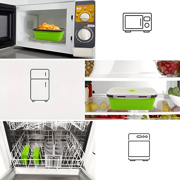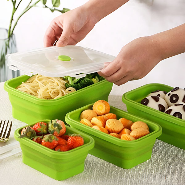 Izgatavoti no augstas kvalitātes silikona, kas nesatur BPA, šie trauki nodrošina, ka jūsu pārtika paliek svaiga un nesatur kaitīgas ķīmiskās vielas.
