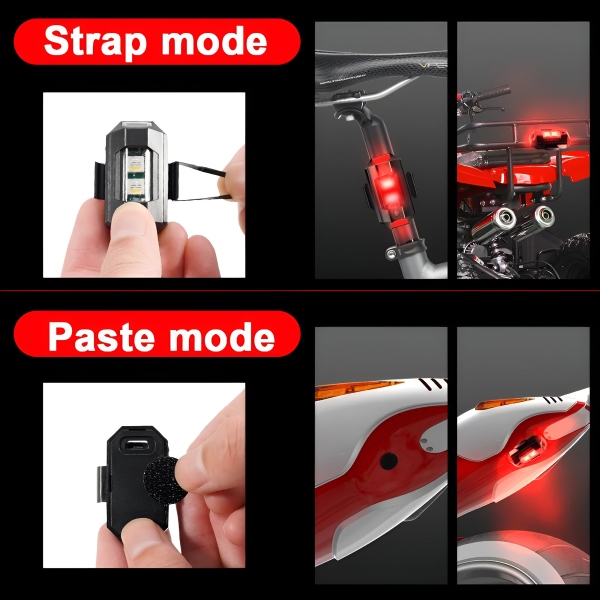 Šie lukturi ir neticami universāli, un tie ir paredzēti automašīnām, motocikliem, velosipēdiem un droniem. Izvēlieties Velcro vai gumijas gredzenu uzstādīšanas metodi drošai un vienkāršai uzstādīšanai. Nav nepieciešami sarežģīti instrumenti vai profesionāla palīdzība.