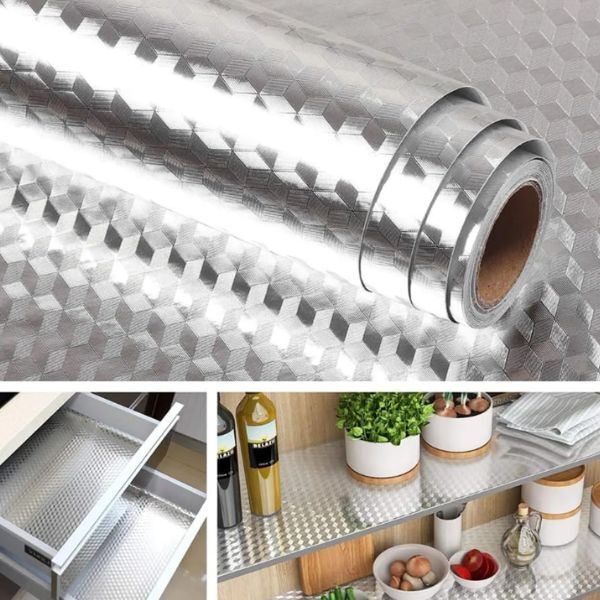 Izgatavotas no augstākās kvalitātes alumīnija folijas, šīs uzlīmes aizsargā jūsu darba virsmas, skapjus un sienas no noturīgiem eļļas šļakstiem un traipiem. To karstumizturīgās īpašības nodrošina ilgmūžību, padarot virtuves uzturēšanu vienkāršu.
